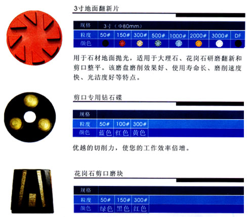 1)割平、研磨:使用重型石材研磨机械配合水平割具片、翻新磨料或钻石碟片依照磨料及磨片的粗细“目数”从粗到细经5—8道程序进行研磨,达到地面光滑平整、石材晶粒清晰为宜。